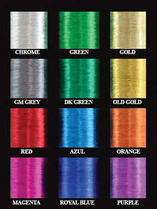 | ●パシフィックベイ社のロッドビルディング用 メタリックスレッドです。サイズはAのみです。 ●価格は各色とも¥210です!!カラーは12種類 左から ●1段目) CHROME , GREEN, GOLD,. ●2段目) GM GREY, DK GREEN, OLD GOLD,. ●3段目) RED, AZUL, ORANGE, ●4段目) MAGENTA , ROYALE BLUE , PURPLE , |